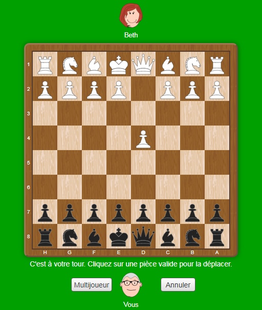 Juste pour débuter et gagner facilement ou pour le design, particularité pour roquer prenez le roi est posez-le sur la tour. | |||||||
