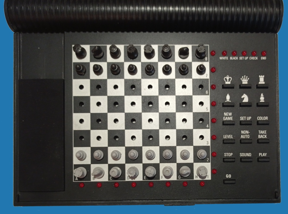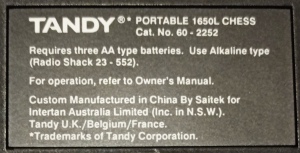 17,1 x 13,8 cms echiquier : 8,8 x 8,8 cms 3 piles AA 1,5 volts